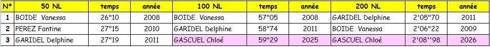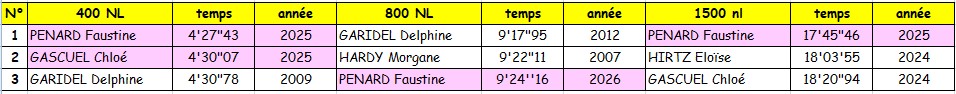 Meilleures performances dames toutes catégories et tous bassins 1975-2025